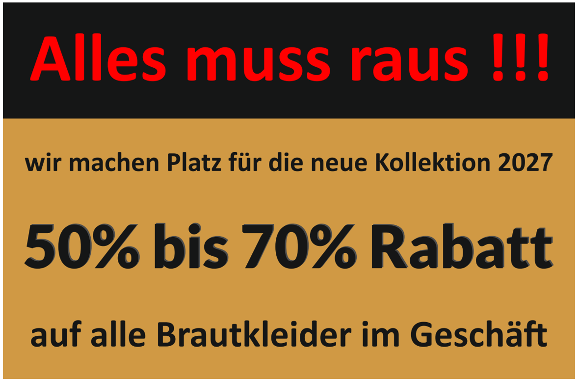 Bis 70% Rabatt auf alle Brautkleider - nur bis Ende März