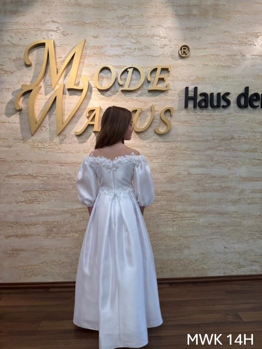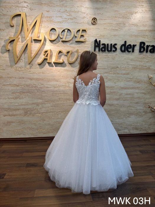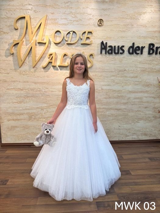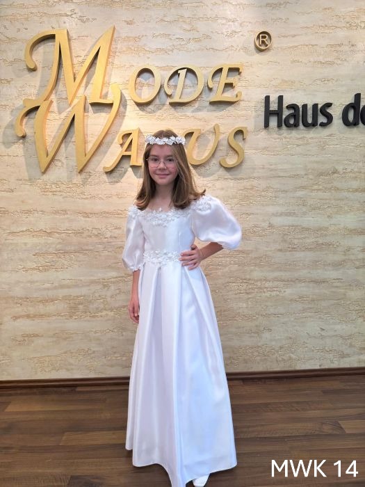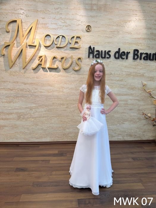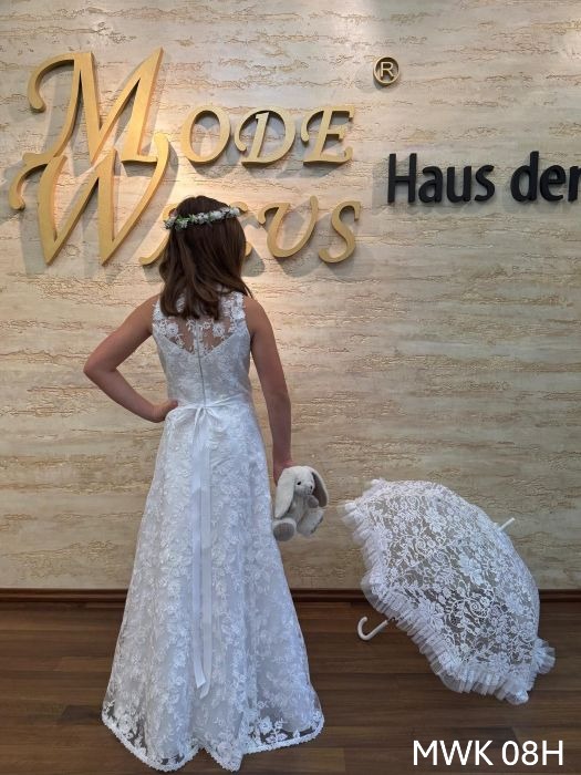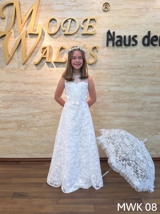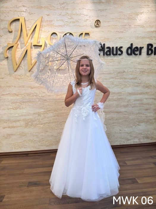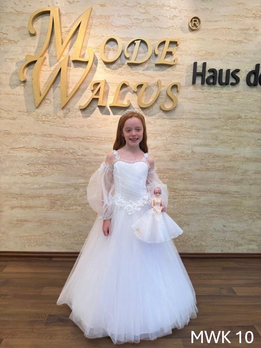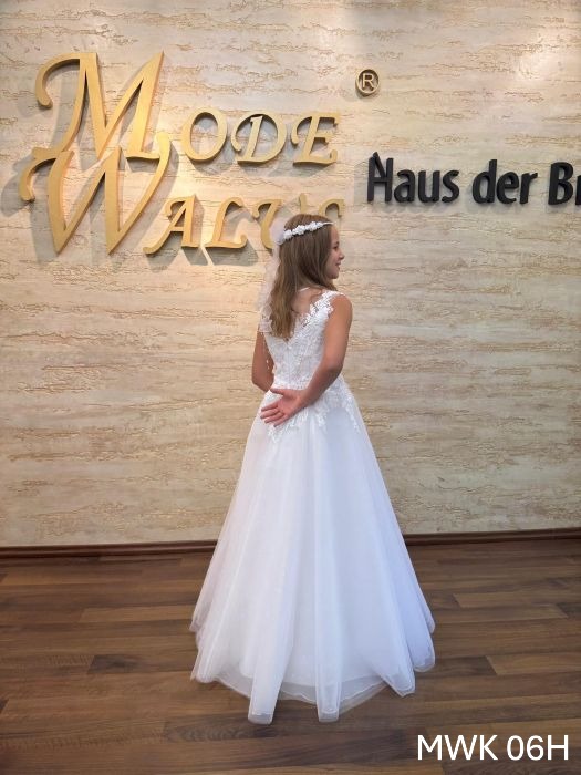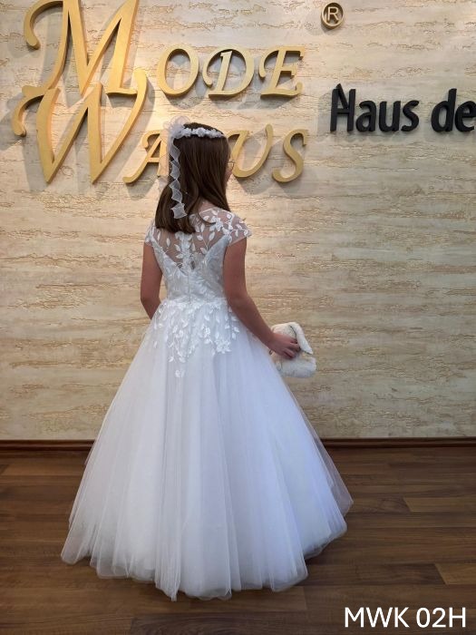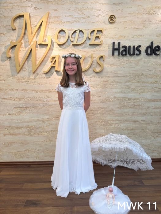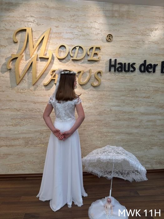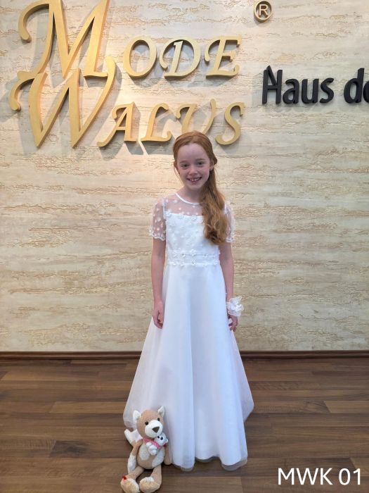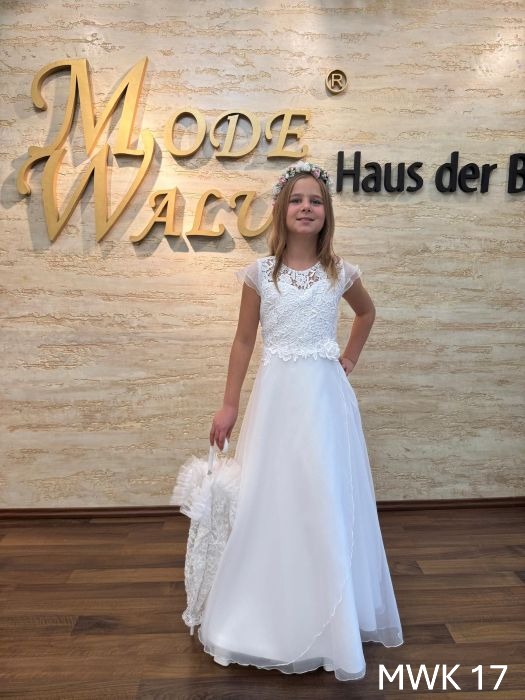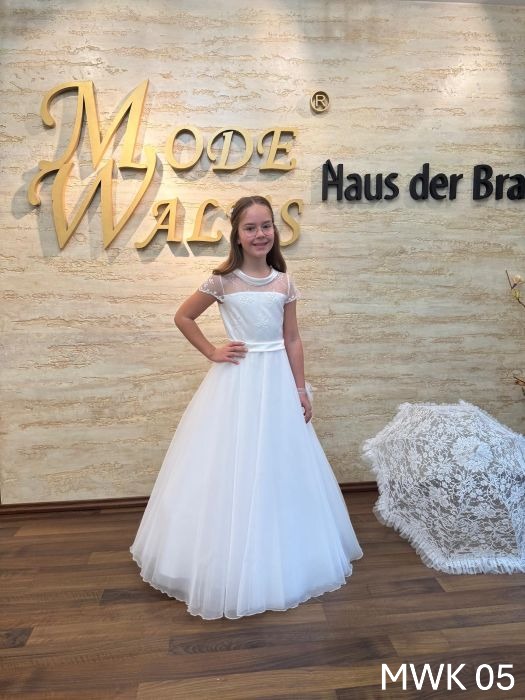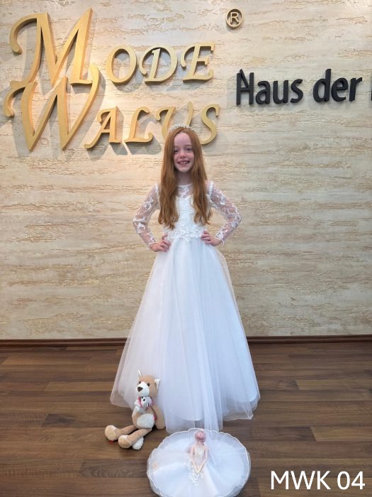 Unsere Kommunionkleider zeichnen sich durch hohe Qualität und große Präzision aus. Wir möchten, dass sich jedes kleine Mädchen an diesem Tag toll fühlt. Unser Portfolio umfasst einfache Kommunionkleider mit Blumenapplikationen sowie elegantere Modelle mit Tüll oder Spitzenbesatz. In unserem Salon nehmen wir alle erforderlichen Korrekturen an dem gewählten Kommunionkleid Modell vor.